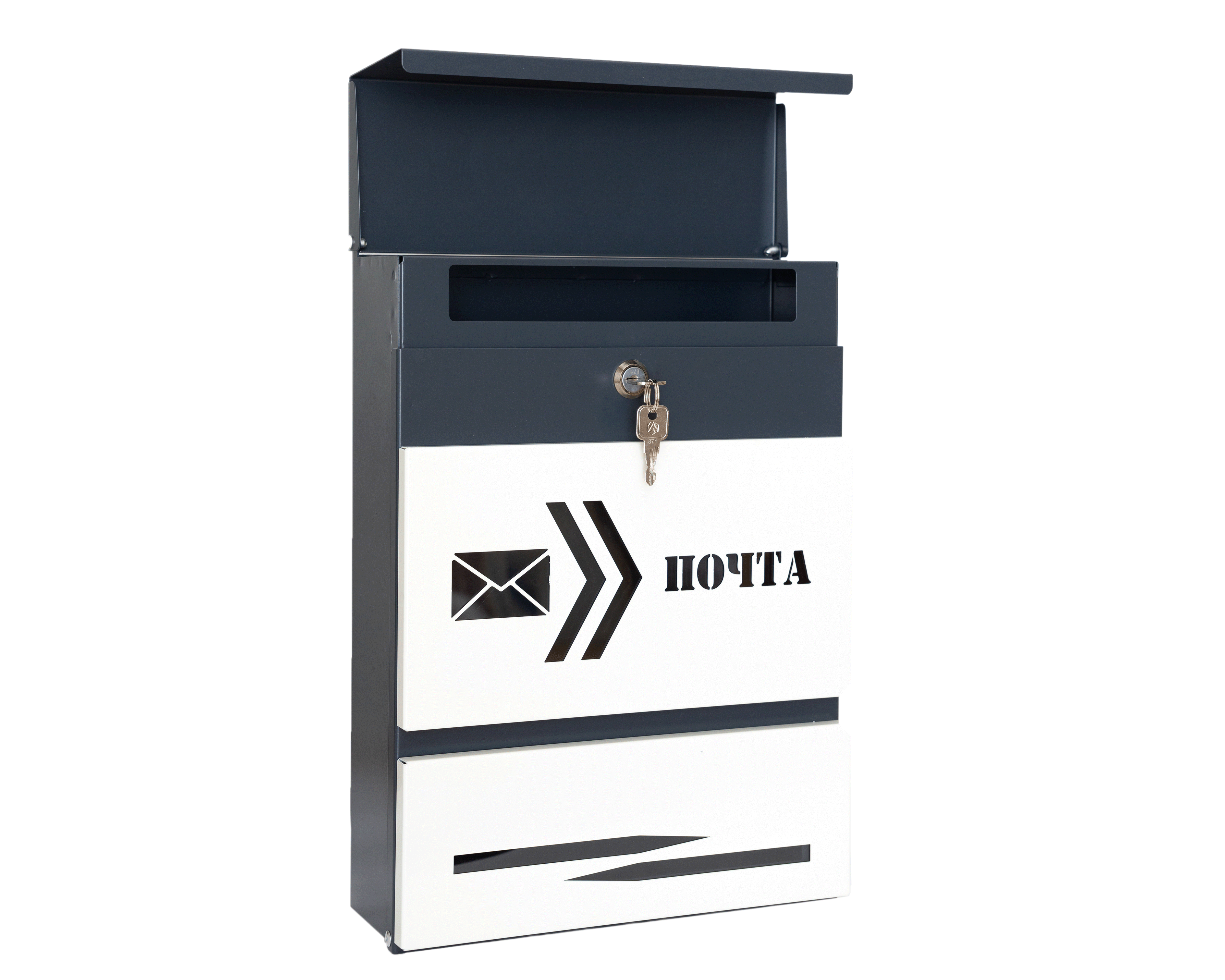 • Подходит для установки как внутри двора, так и снаружи. Отлично защищает корреспонденцию от воздействия окружающей среды, благодаря своему конструктиву.